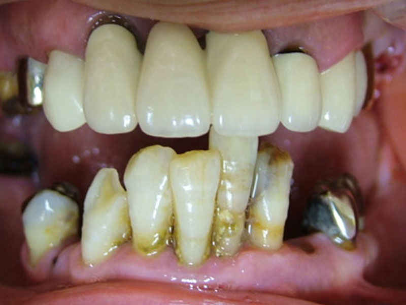 10. コバルトフレームのセラミックを装着し上は終了。下も残存歯によるフルブリッジを装着する。