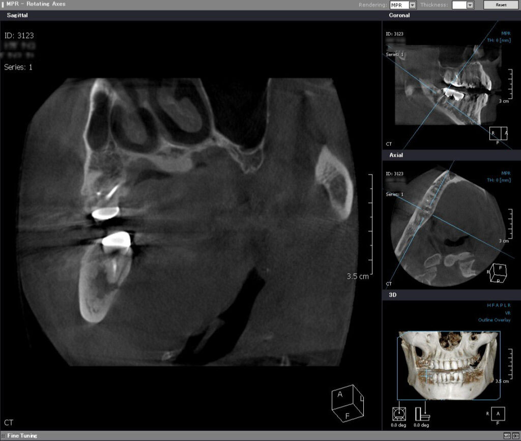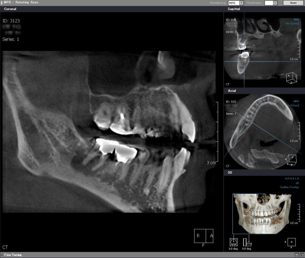 - 主訴:右下の一番奥の歯が噛むと痛い、腫れた感じもする。