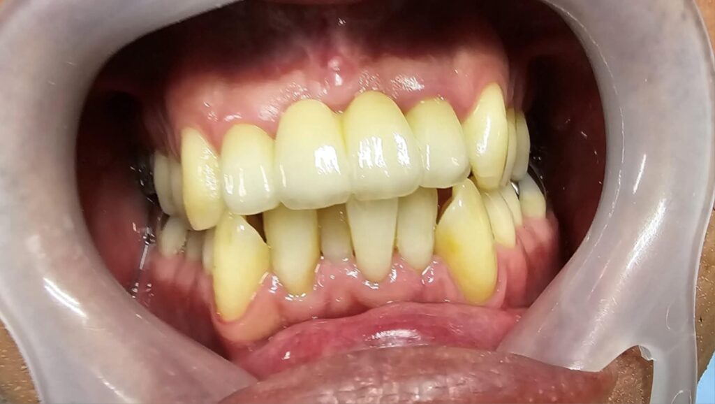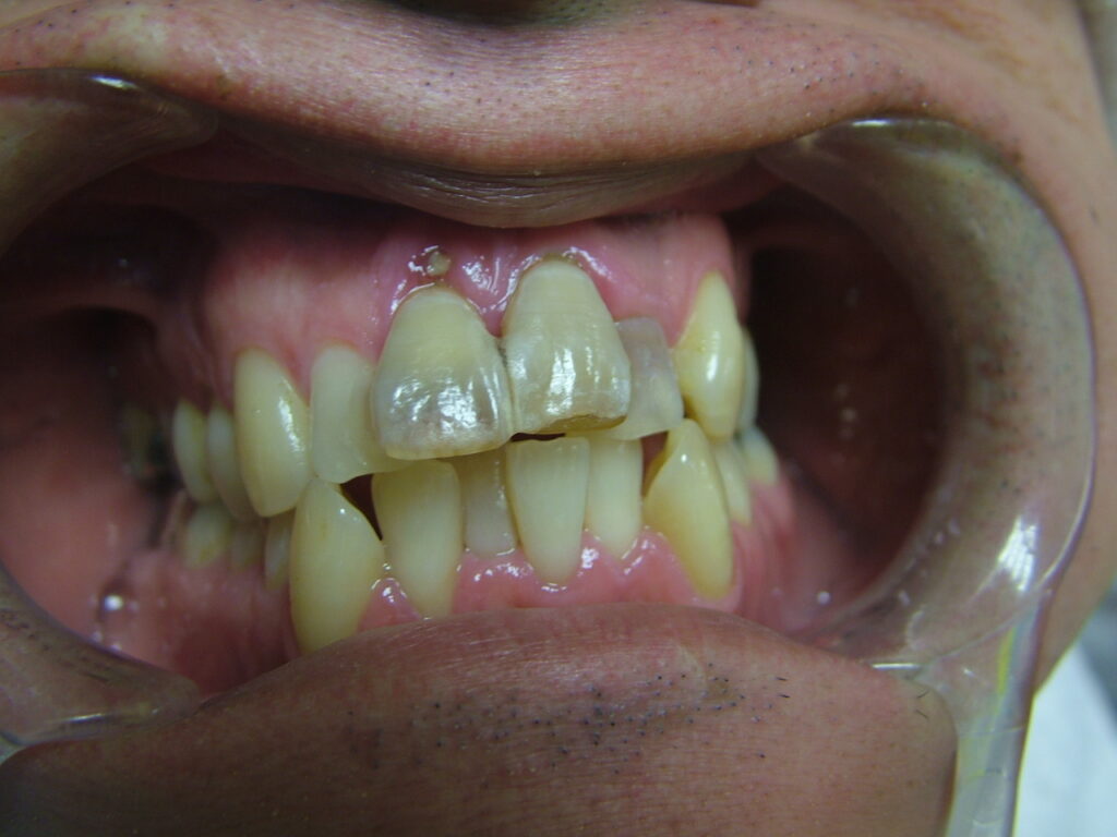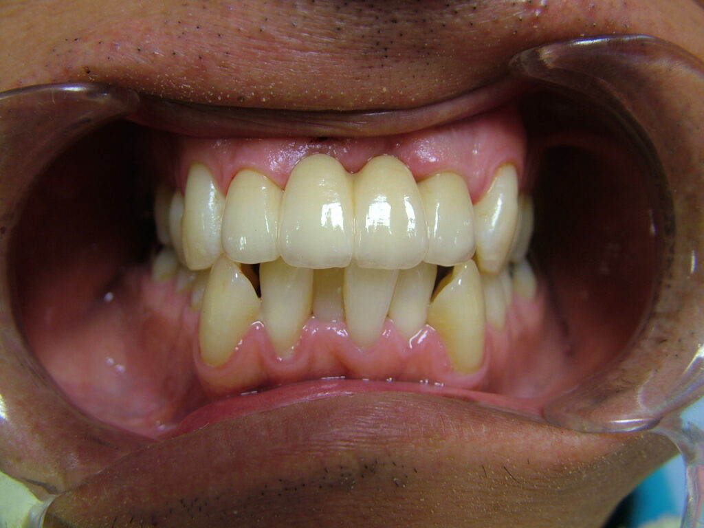 幸い、歯茎の炎症、退縮、オールセラミックの破損等を認めない。できるだけ長く維持してほしいと希望する。
