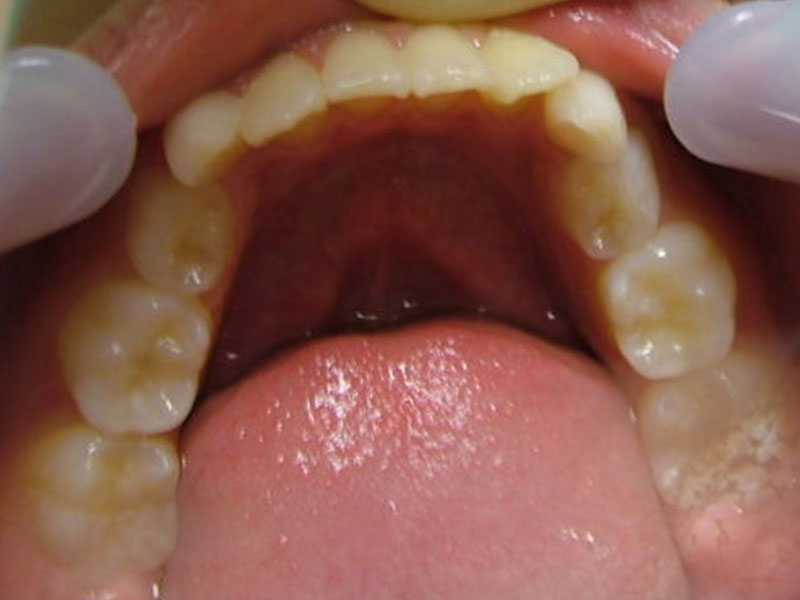 - 治療方針:非抜歯で行う。虫歯予防(フッ素)、歯磨き指導、上下拡大床→咬合関係改善のツインブロック(2級→1級関係へ)→マウスピース矯正→下親知らずの抜歯、保定→メンテナンス