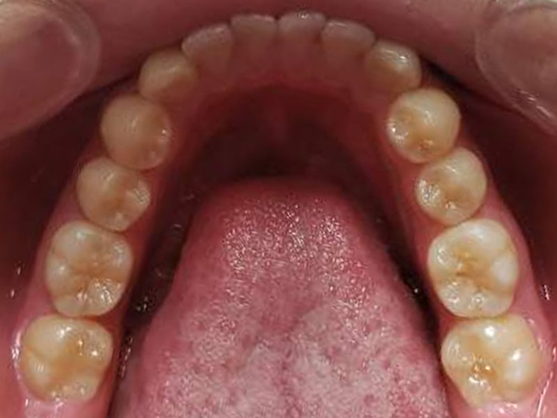 • 治療方針:非抜歯で行う。虫歯予防(フッ素)、歯磨き指導、舌位の改善、上下拡大床+補助断線→マウスピース矯正→下親知らずの抜歯、保定→メンテナンス