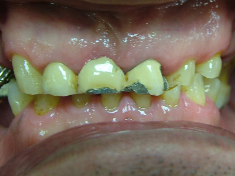 - 主訴:前歯を綺麗にしてほしい。奥歯で噛めるようにしてほしい。