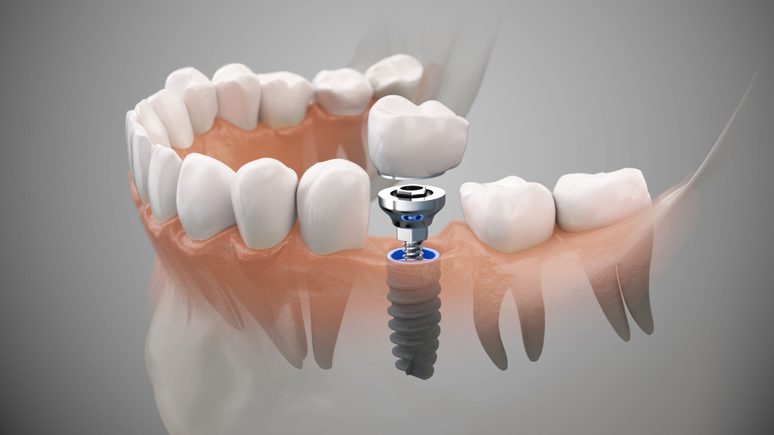 インプラントは、顎の骨に人工歯根を埋め込み、その上に人工歯を装着する治療法です。周囲の歯に負担をかけず、天然歯に近い噛む力と見た目を回復できるのが最大の特徴です。ただし、外科手術が必要で治療期間が長くなることや、全身状態や骨の量によっては適応できない場合があります。